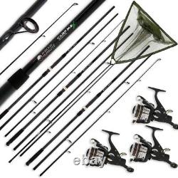 To ensure you are ready to start fishing immediately, all reels come pre-spooled with 10lb line. The set also includes a 42 net and handle for safely landing fish. This comprehensive set is ideal for carp anglers seeking reliable and well-matched equipment.3x Angling Pursuits 3pc Carp Max 12ft 3pc 2.75lb tc Carp Rod. Our most popular carp rod, now available in a convenient 3-piece version! This 12ft rod is perfect for beginners, crafted from durable glass fibre and featuring a comfortable foam handle. Its 3-piece design makes it easy to pack down to a smaller size for effortless transportation. Key Features: 3-piece design for easy travel 12ft length 2.75lb test curve Made from robust fibreglass Includes a plastic sleeve for protection.