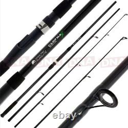 2 Ball Bearings Graphite Spool - Rear Drag - Coiled Bail Spring - Gear Ratio: 5:2:1 - Line Capacity (mm/m) - 0.20/390, 0.25/250, 0.3/175 - Line Capacity (lbs/yds) - 6/365, 8/235, 10/165. 42 Specimen Landing Net & Handle: Includes a high-specification soft green mesh net and a durable spreader block for reliable performance. Includes three 12-foot rods with a 2.75 test curve, designed in a 3-piece format for easy transport and storage. Comes with three carp reels featuring a carp runner function for smooth and efficient performance.
